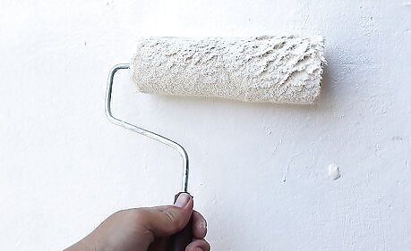 Roll the base color latex paint on the walls, covering the walls completely. Allow to dry for 24 hours before adding the rag glaze.