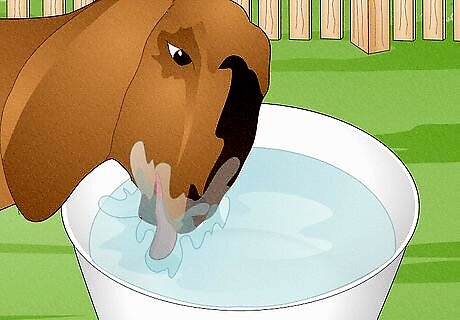 Supply your goats with plenty of water. It is essential that your goats have a constant supply of fresh water, especially during very hot, dry weather. So depending on weather conditions, you will need to supply your goats with ⁄2 gallon (1.9 L) to 4 gallons (15.1 L) of water per goat each day. It's a good idea to plan out how you will supply your goats with water in advance, as you don't want to be stuck carrying buckets of water back and forth to their shelter each day. If you don't have one already, consider digging a water line to your goat shelter or barn or installing a stock tank. If you have a creek or pond on your land, this is a convenient way of ensuring that your goats stay hydrated. However, make sure to get the water tested first to make sure it is safe for drinking. You will also need to watch out for contamination or stagnation.