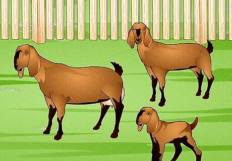 Consider how much space you have. Ideally, you should have a large outdoor area where your goats can range, browse and get the exercise they need to stay healthy. The goats will also need an indoor space for rest and shelter. The general rule of thumb is to provide 10 to 15 feet (3.0 to 4.6 m) of space for every standard size adult goat. Miniature breeds will require slightly less space. It's important not to overcrowd your goats or keep them in confined spaces. This will cause them to become stressed and unhealthy, and may contribute to the spread of disease.