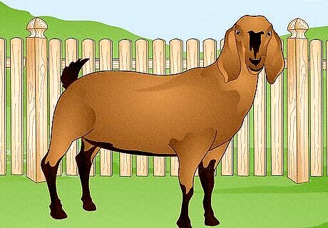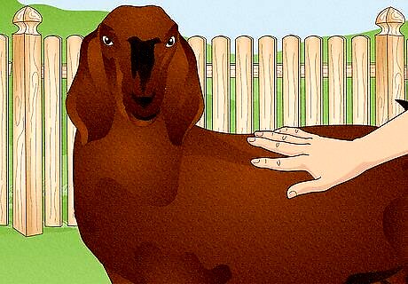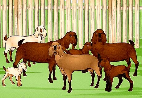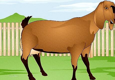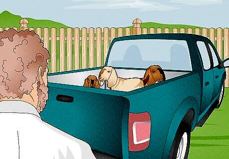 Pick the best, healthiest-looking goats. If you decide to go ahead and start your herd of goats, it's important to know what to look for. You don't want to buy a sick or unhealthy goat that doesn't meet your needs. Look for bright-eyed and alert goats which move around quickly and easily, with an even gait. Run your hands over the goat's body to check for any lumps or bumps - as this could indicate the presence of an abscess. Check the goat's droppings to make sure they are firm, not runny. Look for goats with deep, rounded bellies, wide-set hips and large milk sacks with downward-pointing udders (in does). If possible, you should also try milking any potential does, to make sure they have a good temperament and that the milk comes easily. If you're buying dairy goats, make sure they are friendly and not skittish, as you will need to get close to them in order to milk them.