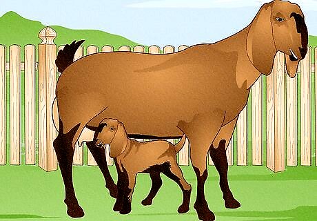 Choose does over wethers and bucks. When starting out, it's a good idea to just purchase does, as only they can bear kids and produce milk. Bucks can be aggressive and start to smell as they grow older. The pheromones they release can also affect the flavor of the does' milk if they are kept in close quarters. Unless you want to raise a large herd of goats, it's better just to borrow a buck when you need one for breeding, rather than purchasing one yourself. Wethers are castrated male goats, and are only useful for providing meat (or as pets). However, if you wait until the first baby goats arrive (which have a 50/50 chance of being male) you will be able to sell the young bucks for a particular type of goat's meat called chevon, which is popular for its lamb-like flavor.
