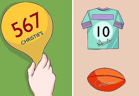 Hold a charity auction. Ask for charity auction items from local businesses, team members, and other people in the team’s networks. Host the charity auction at an event space, hire an auctioneer or make it a silent auction, and provide food and drinks for attendees. Auction off the charity items to raise money for your team.Tip: You could even auction off members of your team to do chores or other tasks for attendees. For example, team members could mow lawns or do other yardwork. Try to get unique items or experiences for the auction. For example, maybe a local fancy restaurant could give you a voucher for a 3-course meal or a certain dollar value towards food at the restaurant. You could also auction off team-related goods like a signed football or jersey.