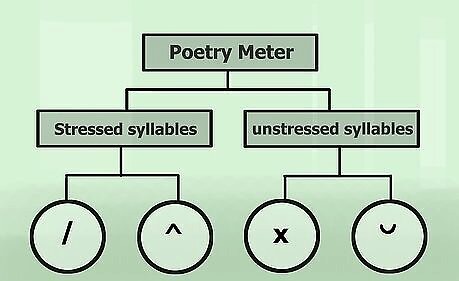 Tap out the meter. Many poems have an established meter. This means that there is a certain number of stressed and unstressed syllables in every line. See if you can identify which syllables are strongly pronounced (stressed) and which are lightly pronounced (unstressed). Stressed syllables are those that are pronounced with emphasis while unstressed are pronounced quickly with no emphasis. Count the number of syllables in the line. Recite the line slowly, tapping along to your words. A hard tap should signal a stressed syllable while a light tap signifies an unstressed syllable. For example, in the line “If music be the food of love, play on,” the stressed syllables are bolded and the unstressed are not. Mark stressed syllables with a / or a ^. Mark unstressed syllables with an x or a u. Be aware that free verse poems have no meter.