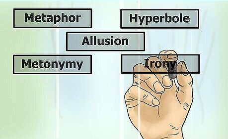 Identify figurative language and imagery. As you begin reading classic literature, pay attention what is being described. You may find that the language is vague, but you can discover what it means. Literature often uses figurative language to signify something other than its literal meaning. Knowing what literary devices are being used can help you interpret the text. Metaphor: a phrase that describes one thing by comparing it to something else or by referring to something entirely different. For example, the phrase “an elephant in the room” signifies that somebody is ignoring an important problem. Hyperbole: an extreme exaggeration. “Her eyes were as big as dinner plates” is hyperbole. Allusion: a reference to another work of art, person or event. The title of the novel Ulysses by James Joyce is an allusion to The Odyssey. Metonymy: a word that has associations with a larger institution but is used to signify the whole. For example, the White House is metonymy for the US Presidency. Irony: a phrase that should signify one thing but actually means the opposite. It may also represent a situation where things occur differently than anticipated. In Samuel Coleridge’s Rime of the Ancient Mariner, “Water, water, everywhere,/Nor any drop to drink” is an example of irony.