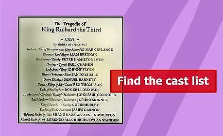 Study the cast list. The cast list comes at the very beginning of the play before the first scene. It will show the characters in the play as well as their relationships to one another. It may even provide a brief line on their motivations or role in the play. Learning the cast list before you begin can help you keep track of different characters as they appear throughout the play.