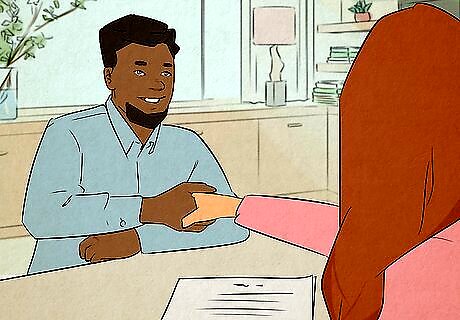 Remain professional and follow interviewing best practices. It is important to remain professional and treat the process as if you are applying for a job at a new company. This may be difficult if you know the person interviewing you, but the truth is that you are there to impress them, remind them why you were chosen for the job in the first place and describe your success in this role thus far. Follow interview best practices such as dressing professionally, wearing a smile, providing a strong handshake, listening actively to the interviewer, bringing a copy of your resume and preparing to speak about yourself (job duties, accomplishments, abilities, knowledge, strengths and your desire to keep your job).