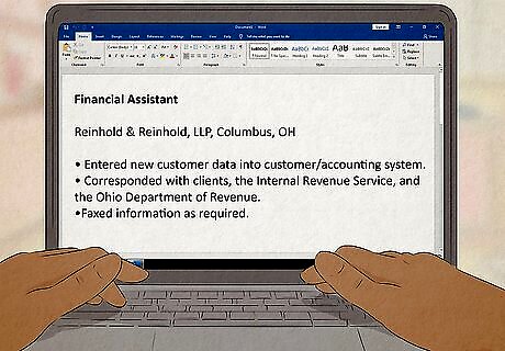 Update your resume to highlight your experience. The last resume you submitted to your company does not include your current position. It is important to add this experience to your resume so you can look good on paper and present your value to the company. Be sure to add your key duties and accomplishments, including any quantifiable results. For example, “Implemented new tracking system to reduce mistakes by 30%”.