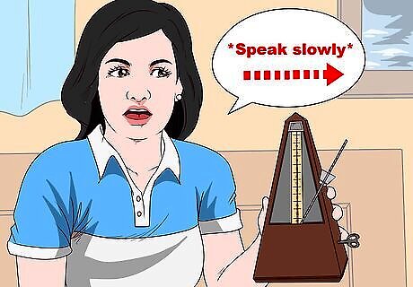Try slowing down your speech. Sometimes, you may be trying to speak faster than your muscles can keep up. Work on slowing down your speech, speaking as distinctly as you can. In fact, you can even use a metronome to slow down your speech. Set it to a slow beat, and try to speak a single syllable per beat.
