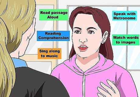 Take an intensive language and speech therapy course. In this type of course, you will have a large number of sessions in a short period of time. This type, of course, may help you regain your language skills faster, but it can be tiring, especially since you've just had a stroke. Therapy can include individual sessions with a therapist, but you may also work in groups. Sometimes, technology is used for therapy, such as an app or a computer program. You'll likely do things like read passages aloud, work in reading comprehension, sing along to music, speak with a metronome, and match words to images.