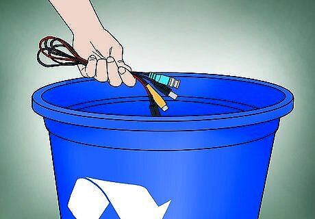 Drop off a collection of cables at an electronics recycling center. These places often have collection boxes on-site where you can go to deposit unwanted electronic components. Your junk hookups will be recycled right there at the facility, and you can rest easy knowing that you’ve done your part to clean up the planet. For information on recycling centers in your area, run a search for "electronics recycling" and the name of your city. If you live in the U.S., you can also visit Earth911.com or contact the National Center for Electronics Recycling using the form provided on their website.