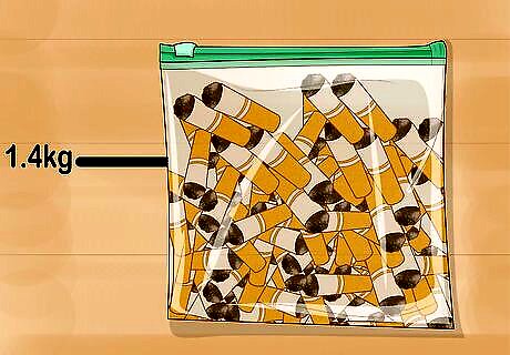 Collect at least 3 lb (1.4 kg) of cigarettes if possible. You will need over a thousand filters to reach this weight, so you may end up storing it for a while. Collecting discarded cigarettes or assembling a collection bin helps. Otherwise, you can try sending a lighter bag to the recycling company. Recycling companies generally pay you $1 USD per pound for bags weighing at least 3 lb (1.4 kg). You can always send smaller amounts of filters. However, it’s more efficient to wait until you have a bigger collection.