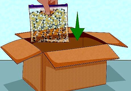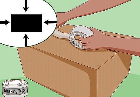 Seal the box with masking tape. Fold the box’s flaps shut, making sure the bag fits firmly inside the box. When you’re done, tape all the way around each fold. Pick up the box to make sure the top and bottom hold tight and won’t open in transit.