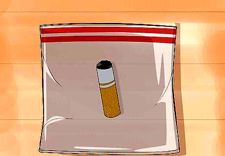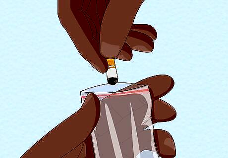 Move the cooled cigarette to a sturdy plastic bag. After you extinguish the cigarette, the filter should cool within a few minutes. Place it in a sturdy plastic bag or container. A thick garbage bag is a good choice since it is unlikely to rip or fall apart. Collect the cigarette filters in a plastic bag or container separate from other trash if you plan on recycling them.