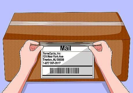 Print and affix a shipping label to the box. You have to get a shipping label from the website you signed up for earlier. Return to the website and indicate that you have a package to ship. They will email you a pre-paid label. Print the label, place it on the box, and tape it down. You will need to get a unique label from the recycling service for each shipment. The label usually goes on top of the box. Consult the shipping company’s rules to clear up any confusion.