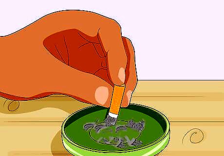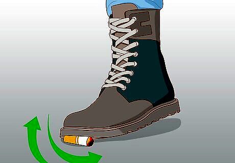 Extinguish the cigarette by grinding out the flame. For safety, extinguish cigarettes fully before attempting to recycle them. You can do this by throwing the cigarette on the ground, stepping on it, and twisting your foot. You should no longer see any glowing or smoke coming from the cigarette butt. If you have an ashtray, push the cigarette’s lit end into it until the heat and smoke stop.