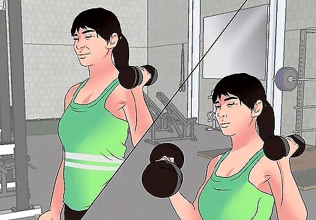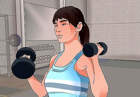 Do aerobics. There are many different aerobic activities you can do. If you are part of a gym, you can take part in any of their aerobic classes. These include things like high-intensity cardio, mixed martial arts (MMA), and spin. You can also try aerobic machines, such as a treadmill, elliptical, or stationary bike. If you aren’t part of a gym or uncomfortable doing gym classes, you can find many different aerobic activities on DVD or YouTube.