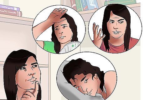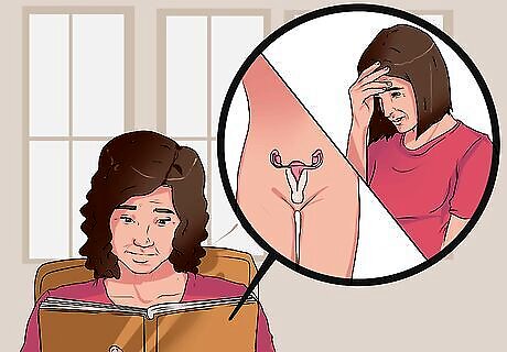 Recognize the symptoms of menopause. Menopause has common symptoms; however, the list of symptoms that women experience is extensive and often very individual. Women go through a number of different changes in the perimenopausal period, and the symptoms may vary depending on a large number of factors. No matter your symptoms, you can find relief. It may be as simple as using exercise to deal with hot flashes or using lubricants to help with painful intercourse. The most common symptoms during perimenopause are: Irregular periods Vaginal dryness Hot flashes Night sweats Sleep problems Mood changes Weight gain and slowed metabolism Thinning hair and dry skin Loss of breast fullness Many of these symptoms can indicate thyroid problems, which is one of the most underdiagnosed conditions in women. It often occurs at the same time women begin the menopausal transition. Make certain your physician does a blood test to determine if your thyroid is functioning well.