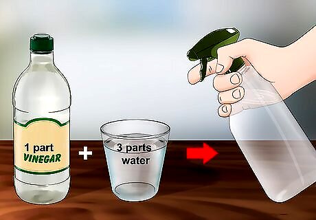 Make your own all-purpose cleaner. Since cleaner usually comes in plastic bottles, making your own and reusing old bottles will help reduce waste. Make your own simple, affordable solution with 1 part vinegar and 3 parts water. Combine the two liquids in a glass or upcycled plastic spray bottle and use it as a disinfectant spray. Add essential oils such as peppermint or lemon to make the scent fresher and more pleasant. You can also use baking soda for scouring and scrubbing.