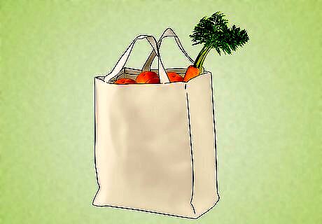 Bring reusable bags to carry your groceries. Every year, billions of plastic bags fill up landfills. To help reduce this number, bring your own tote bags when you go grocery shopping. Reusable bags made of canvas, jute, or recycled plastic are sturdier for carrying groceries and can have a huge impact on the amount of plastic bags you use. You can find reusable tote bags at most grocery stores or online. If you forget to bring your own bag, many stores offer inexpensive reusable bag options near the checkout area. In some states, such as California, stores even charge around 5 cents USD per plastic bag if you don’t bring your own reusable bags.