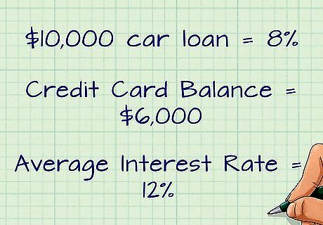Consolidate your car loan with other debts. You may be able to refinance a group of loans with new loan terms. Your monthly payment on one larger loan may be lower after consolidating several smaller loans. Meet with a lender to talk through the pros and cons of a consolidation loan. A consolidation can help you lower the interest rate on your debts. However, you need to consider the risks of a variable rate loan, or extending the term of a loan. Say that you have a $10,000 car loan at 8%. You also have three credit card balances totaling $6,000. The average interest rate on your three cards is 12%. Two factors may lower your interest rate on these loans. If interest rates have declined, or if your credit rating has improved, you may be able to lower the interest rate for these consolidated debts. Having one consolidated payment to make each month also simplifies things for you. When you create your monthly budget, you don't need to account for so many payments.