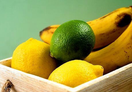 Store ripe bananas, lemons, and limes in a cool, dry place. These fruits typically don’t need to be refrigerated at all, but you do need to put them somewhere cool and dark to prevent spoilage. Avoid humid or moist spaces, like next to the stove or dishwasher, since moisture will spoil the fruit. For example, store them in a cool kitchen on the counter, put them in a ventilated pantry, or store them in your cellar.