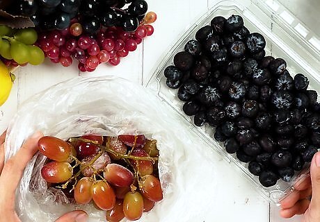 Keep berries and grapes unwashed and in their original packaging. These fruits are already fully ripe when you bring them home, so introducing moisture will only speed up the deterioration process. Keep berries, cherries, and grapes in their original packaging and place them in the crisper drawer of your fridge right away. If you prefer, you can put them in a dry, airtight plastic container before refrigerating them.