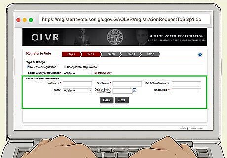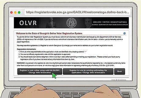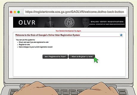 Go to Georgia’s Secretary of State website for the online form. Log on to the Secretary of State’s website and click the “Elections” button from the top menu bar. Click on the “Register to Vote” option from the menu on the right side of the window to open the online form. Select the “I Want to Register to Vote!” option on the bottom of the page and then click the “Register to vote online…” option on the next screen. You can also access the online application here: https://registertovote.sos.ga.gov/GAOLVR/welcome.do#no-back-button.Tip: You can also use the site to check if you’re already registered in case you aren’t sure if you’ve registered before.