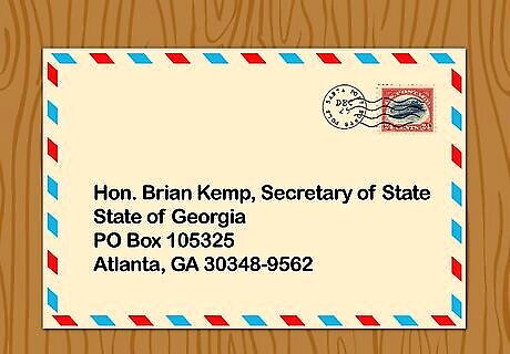 Mail your application to Georgia’s Secretary of State before the deadline. If you got your application from a government office, then peel the tape off along the edge of the application and fold it over to seal it. The form already has paid postage and an address printed, so drop it off at a post office or in a mailbox. If you printed the form out, place it in a stamped envelope so you can mail it out. Address your envelope to: Hon. Brian Kemp; Secretary of State; State of Georgia; PO Box 105325; Atlanta, GA 30348-9562. You can find the deadlines for all Georgia elections here: https://sos.ga.gov/page/election-calendar-and-events.Tip: You can also drop the application off at your local voter registration office if you don’t want to mail it or pay for postage.