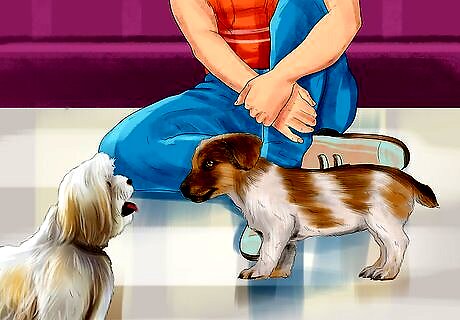 Consider getting another dog. If your dog is having a hard time being alone, then it might benefit from having a friend around when you are gone. If your dog doesn't get along with other dogs, then this may not be the solution, but if your dog is relatively friendly and enjoys other dogs, then its boredom may be relieved by having a new friend around all the time. What has been said about cats is applicable to dogs as well. "The best exercise for a cat is another cat." — Jo and Paul Loeb At the same time, however, getting a second dog is not a decision to take lightly. If your old dog doesn't get along with the new dog then you are still responsible for caring for that new dog. Consider taking your old dog to meet some prospective new dogs before you commit to any adoption to see if it gets along with any of them. Also, after adopting another dog, make sure to introduce the dogs gradually, so that they get off to the right start.