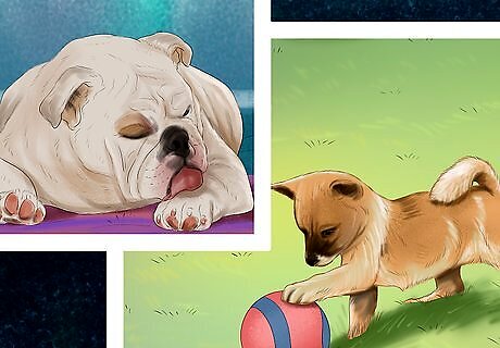 Notice if your dog is lethargic. A young dog that is lying around all day is not getting enough mental stimulation and fun to stop it from becoming bored. While older dogs may need a lot of sleep, young dogs don't and they should engage in activities throughout the day. However, lethargy can be a sign that your dog is ill. If your dog is less active than normal and averse to dog activities it normally loves, then it should be checked out by a veterinarian. If all your dog does is sleep, then you need to work on giving it some activities.