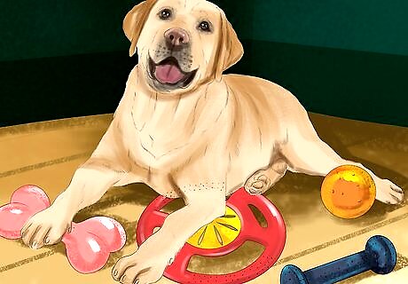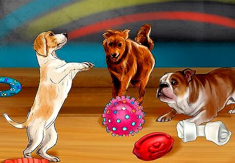 Buy your dog new toys. Like kids, dogs can get bored with their toys. Your dog may be bored simply because it is tired of playing with the same old toys and it needs to be able to focus on something new. Get your dog some new toys and see if that perks the pup right up. Dog toys come in an astounding array of types, from stuffed animals to ropes and balls. If your dog isn't responding to a certain type of toy, try a different one.