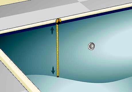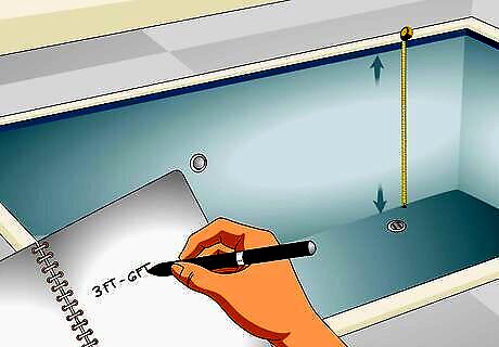 Measure the height if your pool is only one depth. If you have an above-ground pool or an inground pool that is one depth, you’ll only need to measure the pool wall’s height to get the depth. To do this, extend your measuring tape from the bottom of the inside of the pool to the top of the rail.