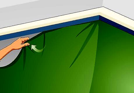 Remove the existing liner from the pool. If you have an inground pool or an above-ground pool with a beaded or unibead liner on a track, pull the liner down and away from the track to get it out. If you have an above-ground pool with an overlap liner, pull the liner up and away from the pool structure to remove it. If the liner is large and heavy, you can use a utility knife to cut it into smaller, more manageable pieces to remove it.