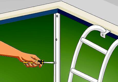 Take off all the pool’s hardware. With a large screwdriver, remove the screws on the faceplates and gaskets from the skimmer, lights, and main drain. Then, remove any pool accessories that are attached, such as ladders or steps. Set these off to the side, keeping all the screws in a safe place so you’ll be able to easily reinstall these later.