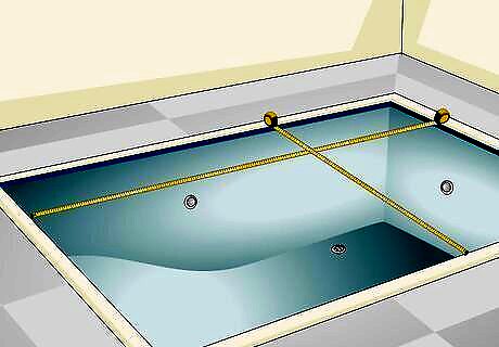 Take measurements of the length and width of your pool. Using measure tape, measure the length and width of your inground or above-ground pool. The way in which you’ll measure your pool will largely depend on its shape. For a round pool, measure the diameter of the pool across the center of the inside of the pool wall. Take this measurement in at least 2 places to make sure that your pool is actually round and not slightly oval. For a rectangular pool, measure across both the short and long sides in 2 places to ensure your measurements are accurate. For an oval pool, measure from one round end to the other to get the length, then across the parallel walls in 2 places to get accurate measurements.