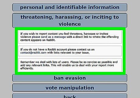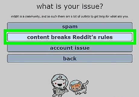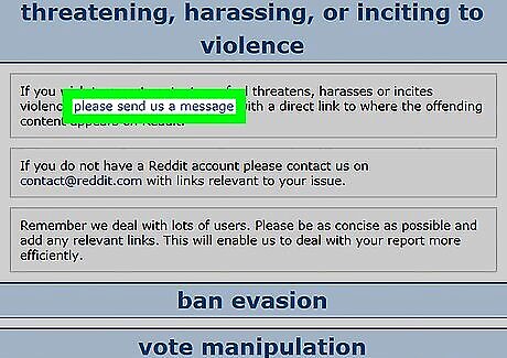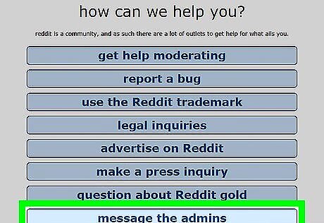Follow the instructions to contact the admins. Choose from one of the following two options to complete the reporting process: If you have a Reddit account, click please send us a message to access the form. Fill out the entire form and be sure you include the name of the subreddit. When you're finished, click send. If you don't have a Reddit account, compose an email message to [email protected] in your email messaging program. Be sure to include all of the following information: The name of the subreddit, which rule it violates, and any relevant links that prove your point.