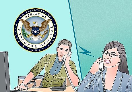 Contact the OIG. The OIG has the authority to exclude individuals and organizations who engage in Medicare fraud and abuse, as well as impose civil penalties for certain violations. You can call the national fraud hotline at 1-800-MEDICARE to report fraud to the OIG. The OIG also has an online form you can fill out to report Medicare fraud. When you report to the OIG, any identifying information you provide about yourself will remain confidential. The OIG won't tell your health care providers that you reported them. However, you also may enter your complaint anonymously. You can report to the OIG regardless of who you are. You don't have to be a Medicare beneficiary or a health care provider to file a fraud complaint. You also can report fraud by sending a written account through the mail to the HHS Office of the Inspector General at HHS Tips Hotline, PO Box 23489, Washington, DC 20026-3489 or to the Centers for Medicare and Medicaid Services at Medicare Beneficiary Contact Center, PO Box 39, Lawrence, KS 66044.