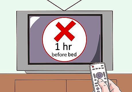 Limit and monitor TV watching. Another way to ensure that you sleep well is to place limits on the amount of TV you are watching before bed. Television shows or movies often contain images or storylines that are disturbing or exciting, which are not conducive to a restful environment. Cut off all electronics a minimum of one hour before bed. Consider listening to relaxing music instead if you enjoy noise while you sleep. Avoid cell phone and tablet use before bed, as well.