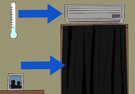 Keep your bedroom dark and cool. You will find that it is often easiest to fall asleep in rooms that are dark and cool. Keep your thermostat at a temperature that is cool but comfortable at night and bundle up with blankets. Consider purchasing dark drapes or curtains to keep the sunlight at a minimum while you are sleeping. Consider also purchasing a sleep mask for your eyes to cancel out light.