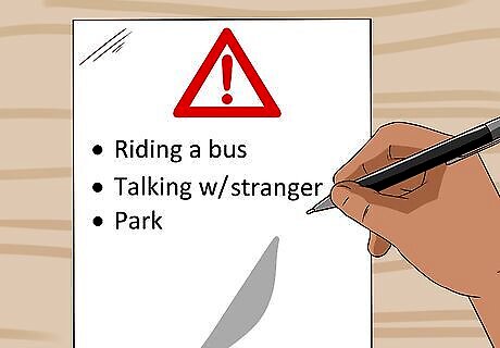 Make a list. Write down a list of things that trigger your PTSD. This could include events, people, and places that cause a PTSD reaction. Use this list to help you avoid triggering situations when you are looking to rest or recuperate.