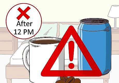 Avoid caffeine. Caffeine can drastically disrupt your sleep cycle by keeping you up late at night, especially if you consume it close to your bedtime. Set limits on the amount of caffeine you drink per day and avoid any and all after 12PM. This will allow the caffeine to leave your system so that you can fall asleep faster. Consider non-caffeinated soda or coffee if you still want the taste of the drink but are avoiding the caffeine.