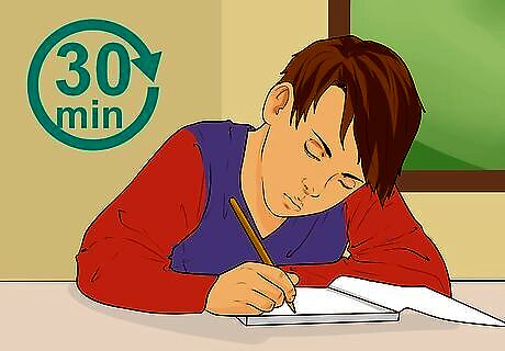 Keep your study sessions brief. Aim for 20-30 minutes at a time. Give yourself at least a 10 minute break in between sessions. Studying for long periods of time without breaks can actually breed confusion, so short intervals are the key to retention. It might be helpful to turn on a timer as you start each session. This will ensure that you take your breaks.