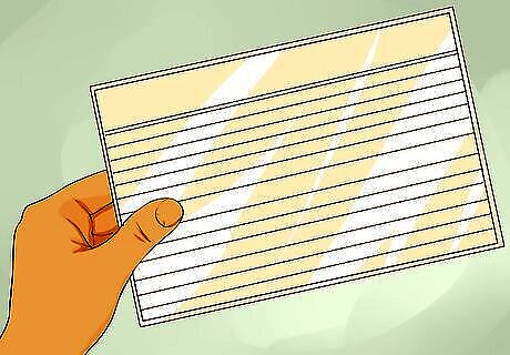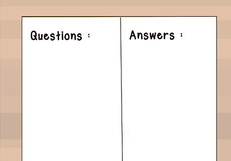 Use a piece of paper instead. If notecards don’t appeal to you for whatever reason, you can do the same basic concept using a sheet of white, unlined paper. Draw a line down the center of the page. On the left you can write a series of questions matched with their answers on the right side of the paper. As you study simply cover up one side or the other. Shuffling is not possible with this method so make sure to mix up the order in which you study the question/answer pairs.
