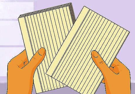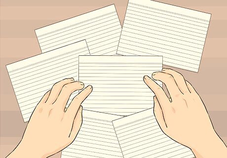 Work with a study group. Get together with a group of your classmates and go through your cards together. You may find that other people covered areas that you missed and vice versa. Try to teach each other the material to test your knowledge level. Quiz each other using the cards as a question bank.