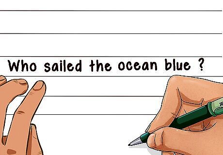 Put word games on your cards. If you’ve come up with a quick way to remember a piece of information, put that down on a card. All types of mnemonic devices (or memory boosters) are helpful when studying. Keep it simple and put only one major piece of information on each card. A history student might put the question, “Who sailed the ocean blue?” on one side of a card with the answer, “Columbus sailed the ocean blue in 1492,” on the other side. Rhyming is a mnemonic device that helps with knowledge retention.