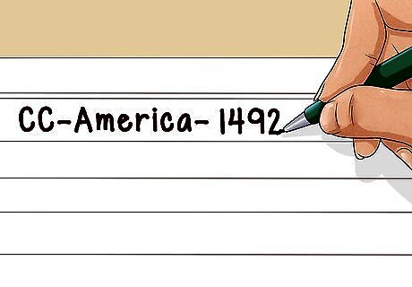 Keep the text brief. Stick with short phrases instead of full sentences. Use abbreviations for words when possible. You will want to review the cards quickly and condensing the text makes sure that only the most important ideas make it onto the card. The very process of choosing the card’s text will kick-start the learning process. For example, if you are studying history you might write, “US” instead of “United States.” A shortened sentence might look like, “CC-America-1492,” the longer version being “Christopher Columbus arrived in America in 1492.”