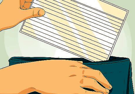 Mix up the order of your cards. Your mind will become bored if you go through your cards in the same order over and over again. Shuffle your cards, throw them on a table and mix them up, or put them in a jar and pull one out at a time. The card that you see each time should be unpredictable, just as a question will be on a test.