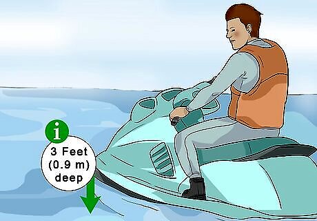 Make sure that there is nothing in the water that could clog the water intake grate and that the PWC is started or ran in water AT LEAST 3 feet (0.9 m) deep. PWC engines can suck rocks and debris from the bottom in shallow waters resulting in a damaged or clogged impeller. Never operate a PWC in shallow water.