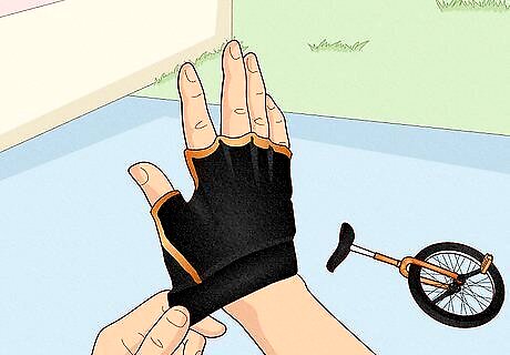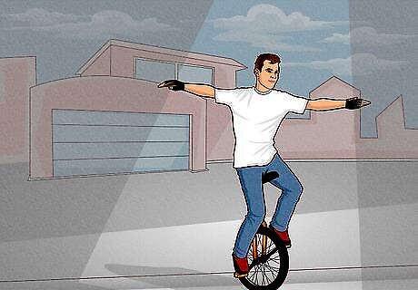 Set up your unicycle properly. The seat height is critical: you should be able to reach the bottom pedal, with just a small crook in your knee. Get an extension on the post if needed. The post itself should be easily adjustable. Make sure the pedals are rubber (and not metal). It's hard enough to learn, without doing it on a cheap, poorly-setup unicycle!
