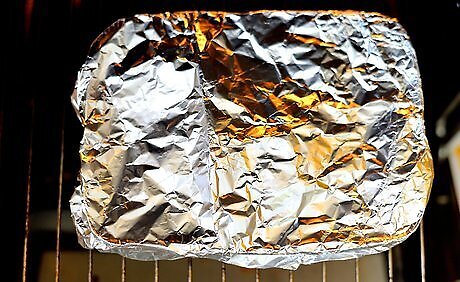 Cover the ham with foil to prevent the ham from drying out. Place a sheet of foil all the way over the pan. Wrap it tight around the pan's edges so it forms a tent over the ham. Using foil is optional, but it'll lead to a juicier, tastier ham. Alternatively, wrap the ham directly in foil or place it in a cooking bag. Include the water inside the foil or bag. You may also leave the ham uncovered and cook with less water.